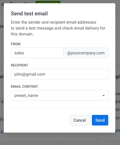 Section titled “Отправка тестового письма”Как только настройка домена и верификация DKIM будут завершены, вы можете отправить тестовое письмо, чтобы убедиться, что ваши настройки Email работают корректно и что письма будут успешно доставляться пользователям после запуска вашей кампании.