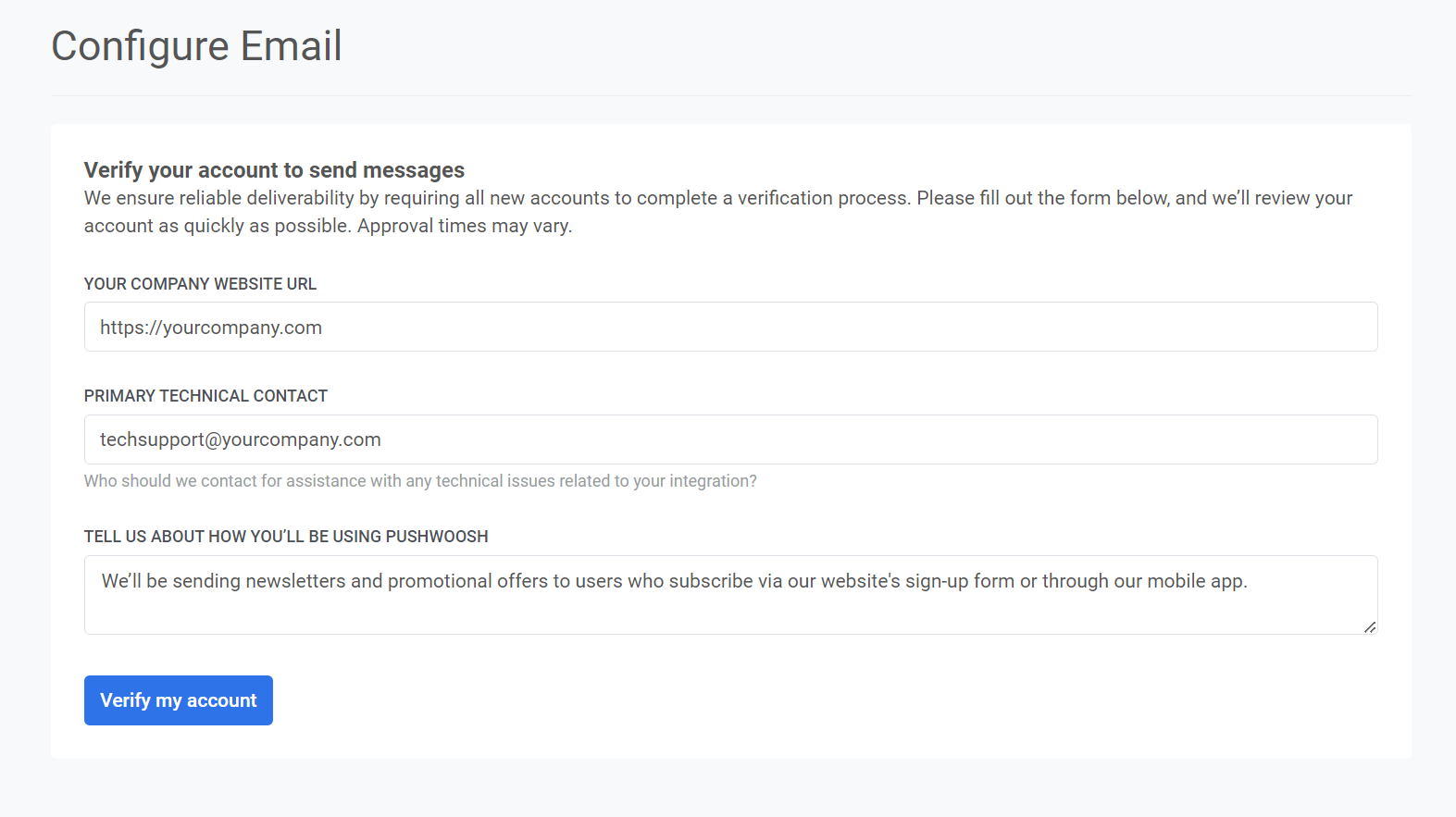 После верификации вашего аккаунта вы получите email с подтверждением. Затем вы сможете перейти к настройке параметров отправителя.