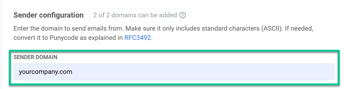 Важно: Этот домен должен быть подтвержден через DNS на следующем шаге, прежде чем его можно будет использовать в ваших email-кампаниях.