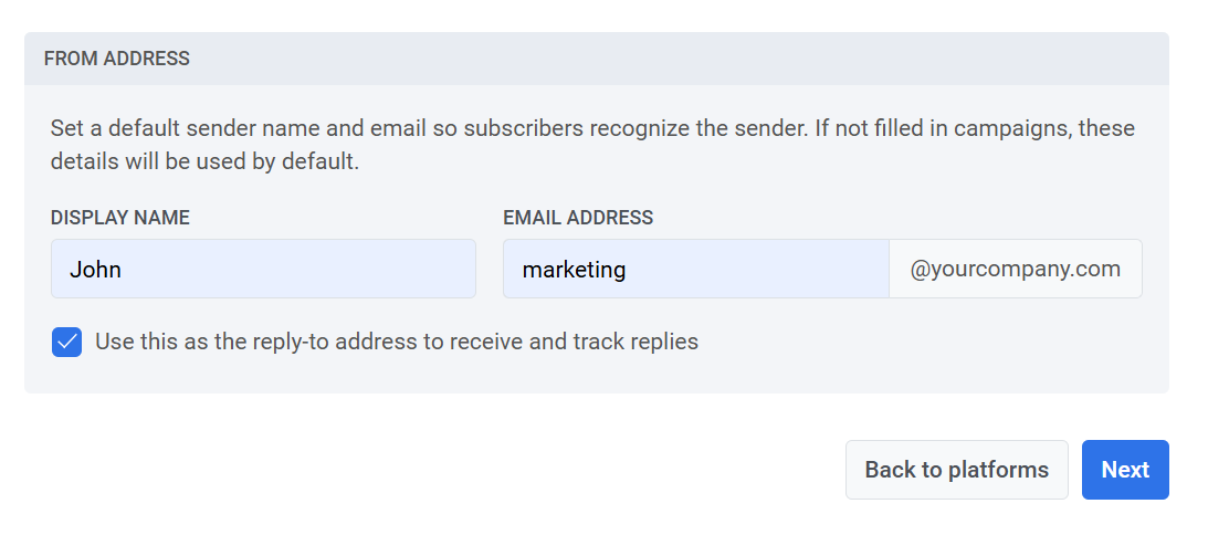 Примечание: Эти данные отправителя по умолчанию будут использоваться автоматически в кампаниях, если вы не укажете другие данные для отдельной кампании.