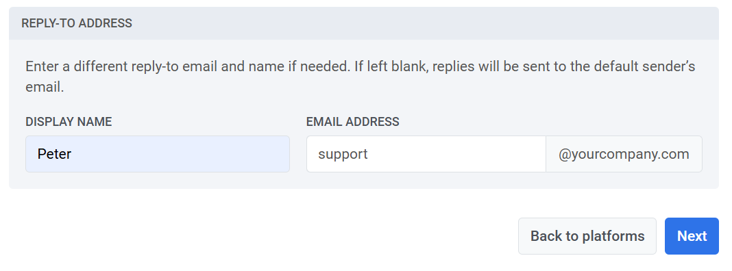 Если оба поля останутся пустыми, ответы будут отправляться на email отправителя по умолчанию, указанный в разделе From address.