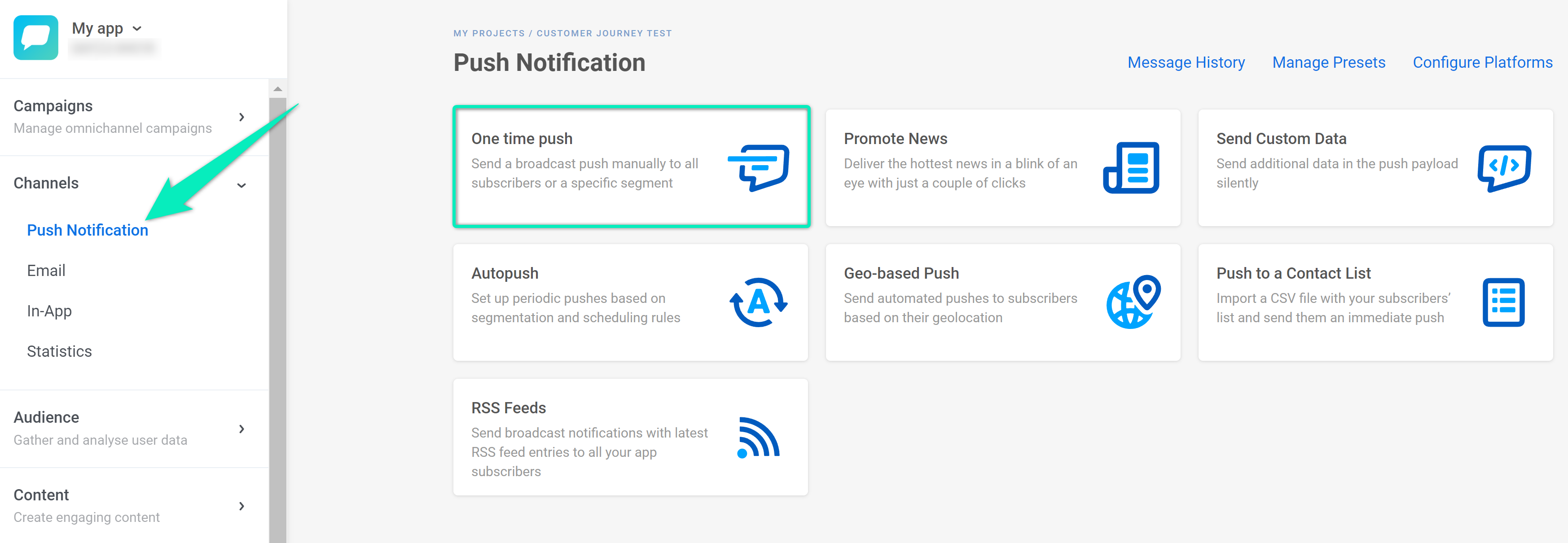 3. При создании контента для push-уведомлений выберите Windows в форме контента.