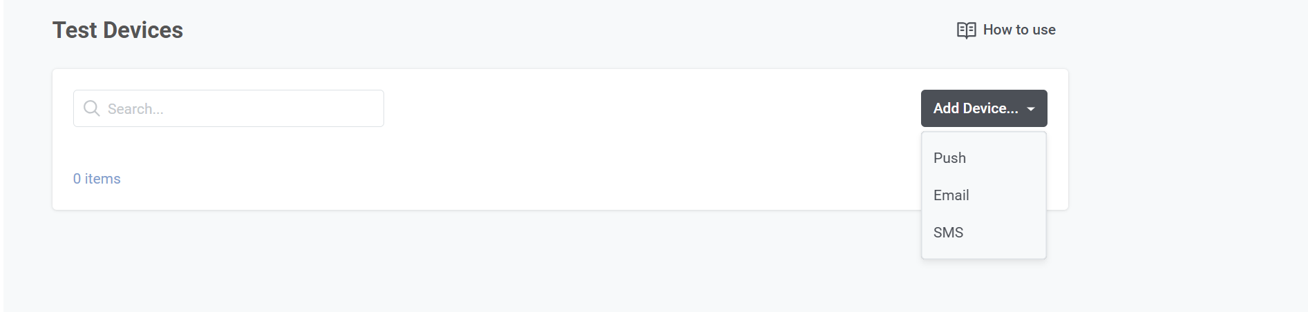 - В разделе Тестовые устройства нажмите Добавить устройство и выберите Push.