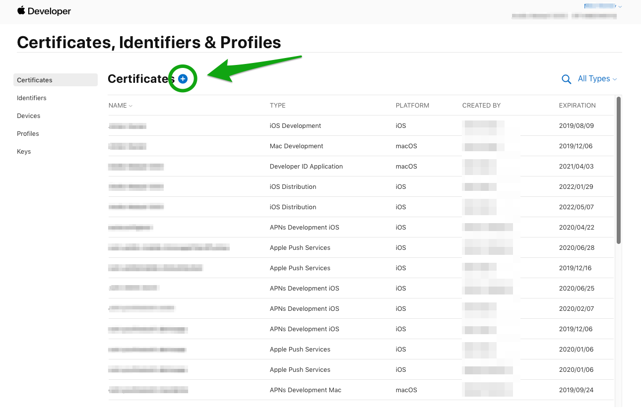 Section titled “Регистрация в Apple”1. Перейдите в раздел Certificates, Identifiers & Profiles на портале Apple Developer.
