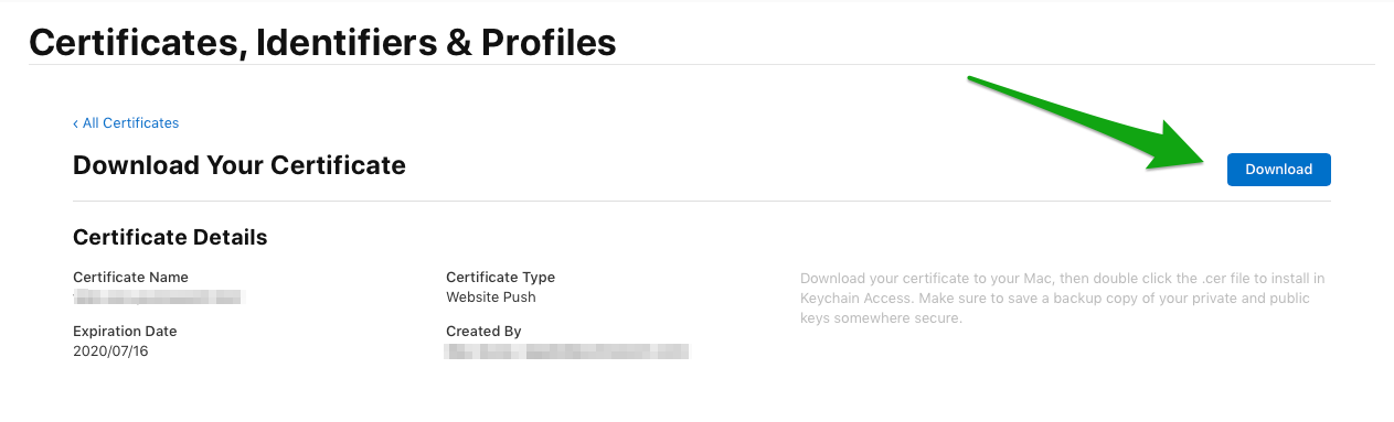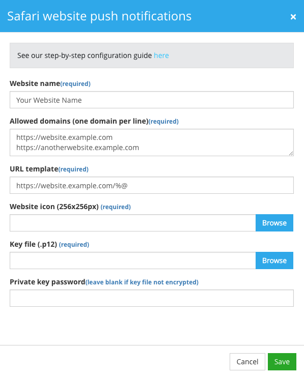 Wavesend автоматически сгенерирует push-пакет с набором иконок, JSON-словарем сайта и файлом манифеста, который Safari запрашивает с сервера. Вы можете скачать его в любое время.