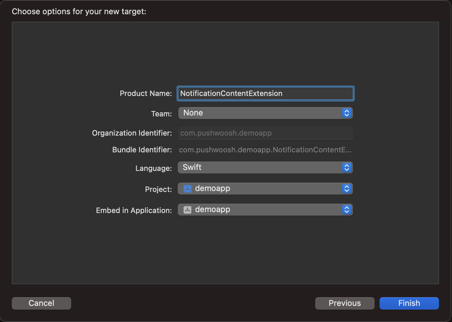 Section titled “2. Добавьте код в ваше приложение”Загрузите PWNotificationExtension с Github и замените PWNotificationContentExtension в вашем Xcode Project на одноименный файл с Github.