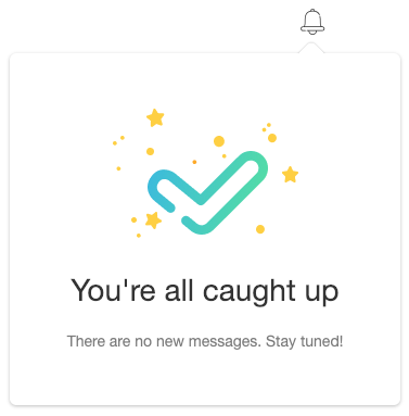Wavesend.push(['init', { ..., inboxWidget: { enable: true, triggerId: 'pwInbox', title: 'Inbox', // заголовок виджета emptyInboxTitle: 'You\'re all caught up', // заголовок виджета для пустого инбокса emptyInboxText: 'There are no new messages. Stay tuned!' // текст виджета для пустого инбокса }}]);Результат будет выглядеть так: