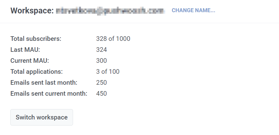 | Emails sent last month | Общее количество Emails, отправленных из рабочего пространства за последний месяц |