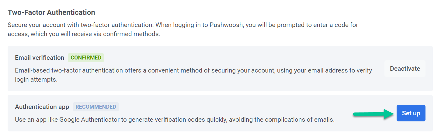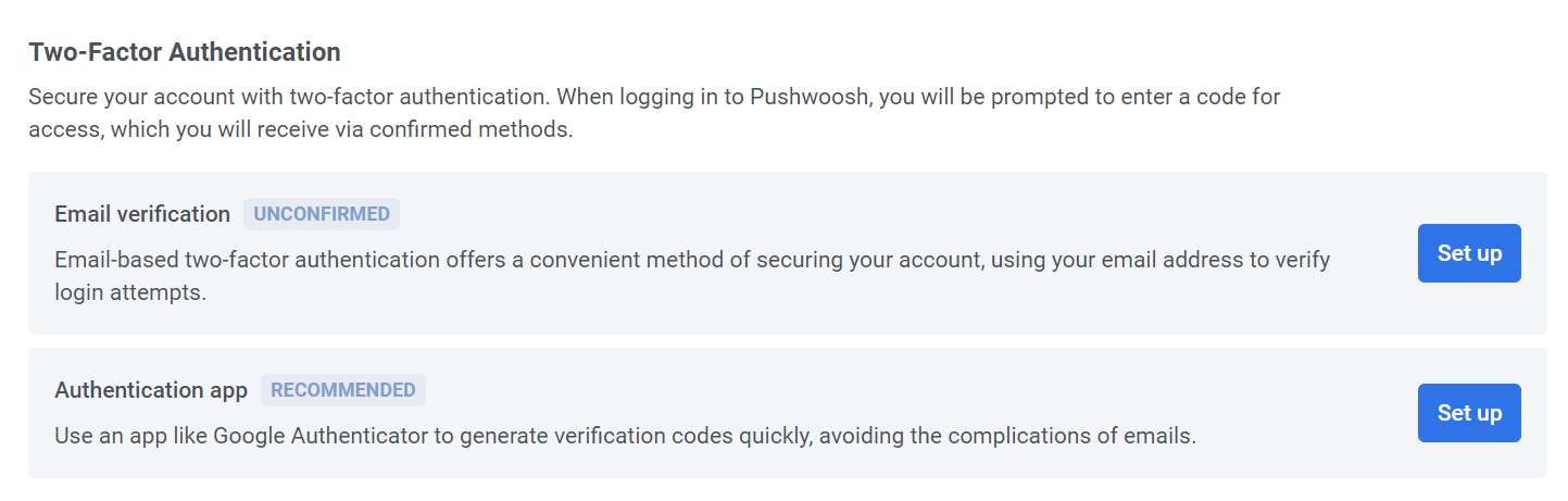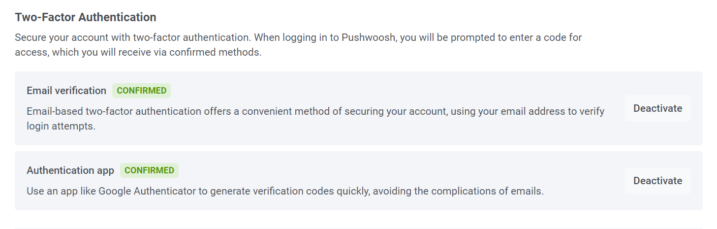 Вы можете включить как подтверждение по электронной почте, так и приложение для аутентификации. Это позволит вам выбирать любой из этих методов при входе в систему и гарантирует наличие запасного варианта на случай проблем с получением кодов.
