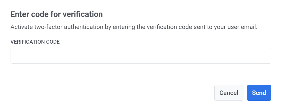 Section titled “Подтверждение по электронной почте”Нажмите Настроить, чтобы получить код подтверждения. Введите код в соответствующее поле, чтобы активировать двухфакторную аутентификацию.