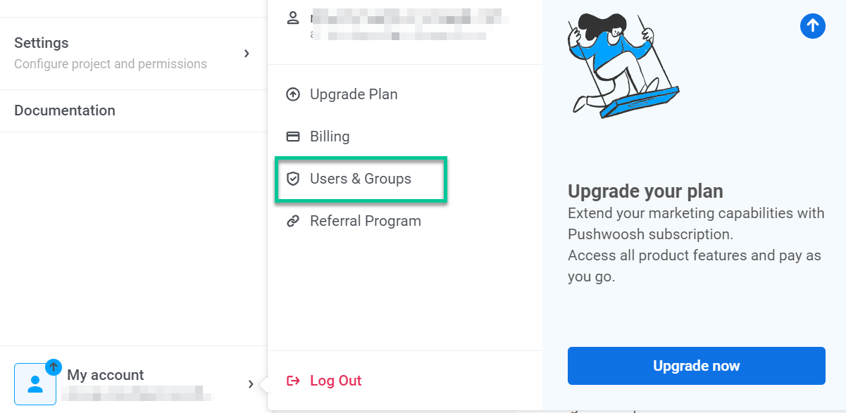 Section titled “Как включить двухфакторную аутентификацию для дочерних аккаунтов?”1. Войдите в свой аккаунт в Wavesend Control Panel, перейдите в Мой аккаунт, затем нажмите Пользователи и группы.