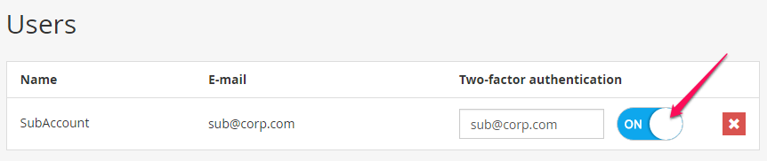 Как включить двухфакторную аутентификацию для дочерних аккаунтов?