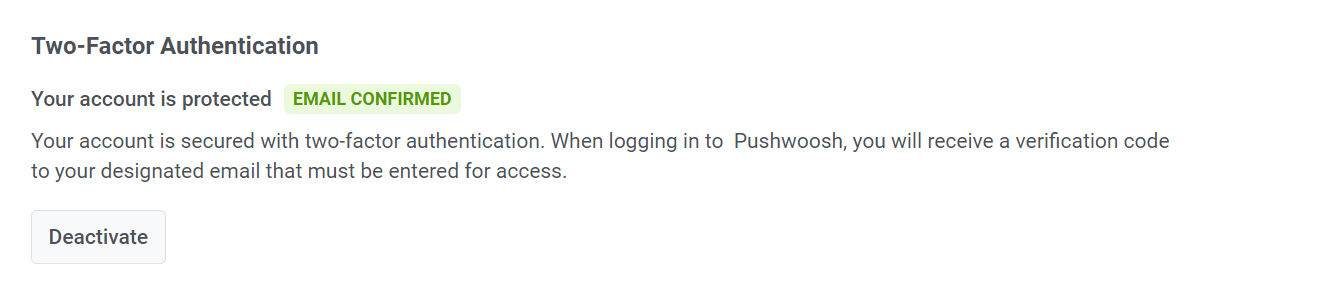 Если двухфакторная аутентификация включена для вашего аккаунта, вы увидите сообщение Ваш аккаунт защищен и зеленый значок Email подтвержден. Для входа в Wavesend вам нужно будет ввести код подтверждения, который будет отправлен на вашу зарегистрированную электронную почту.