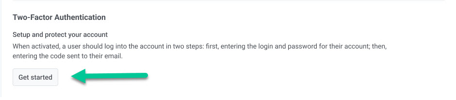 2. Затем нажмите Начать в разделе Двухфакторная аутентификация.