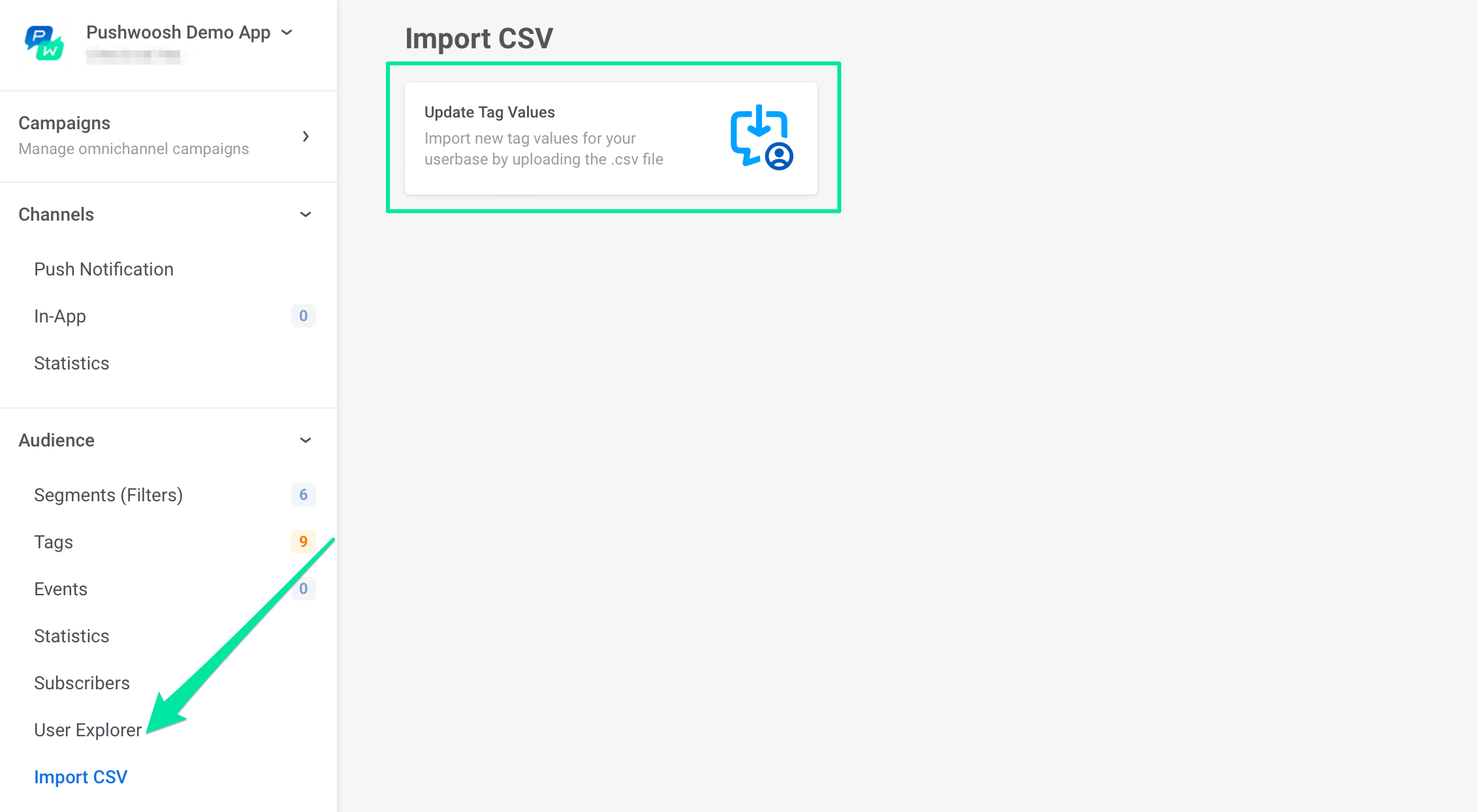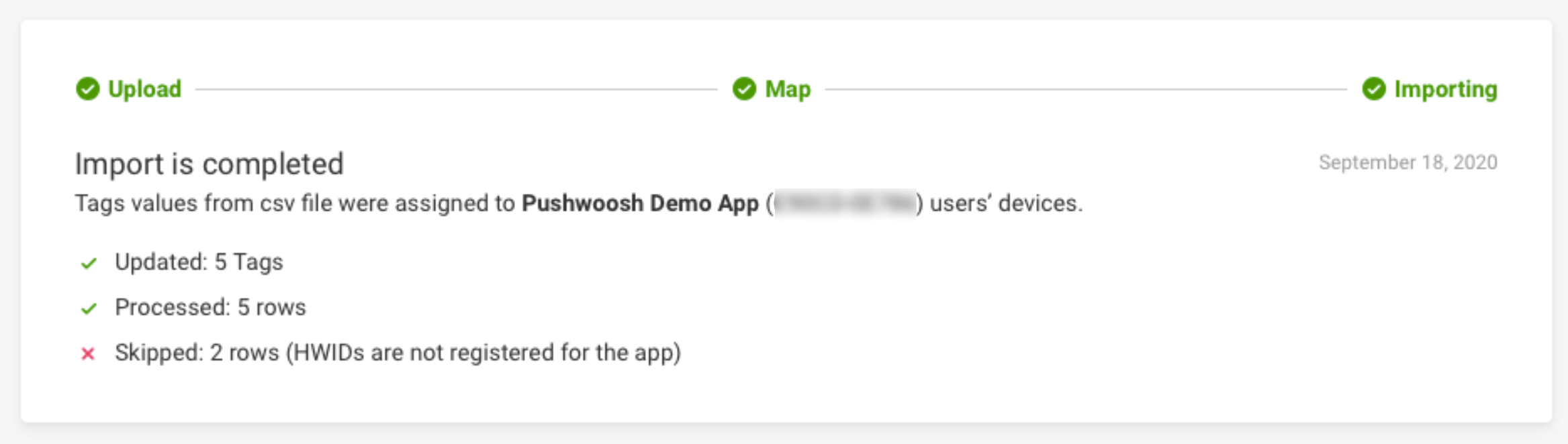 Чтобы упростить маркетинговую сегментацию, вы можете назначать значения Tag устройствам ваших подписчиков через CSV. Загружая CSV-файлы, вы можете устанавливать значения для нескольких Tags и нескольких устройств одновременно.