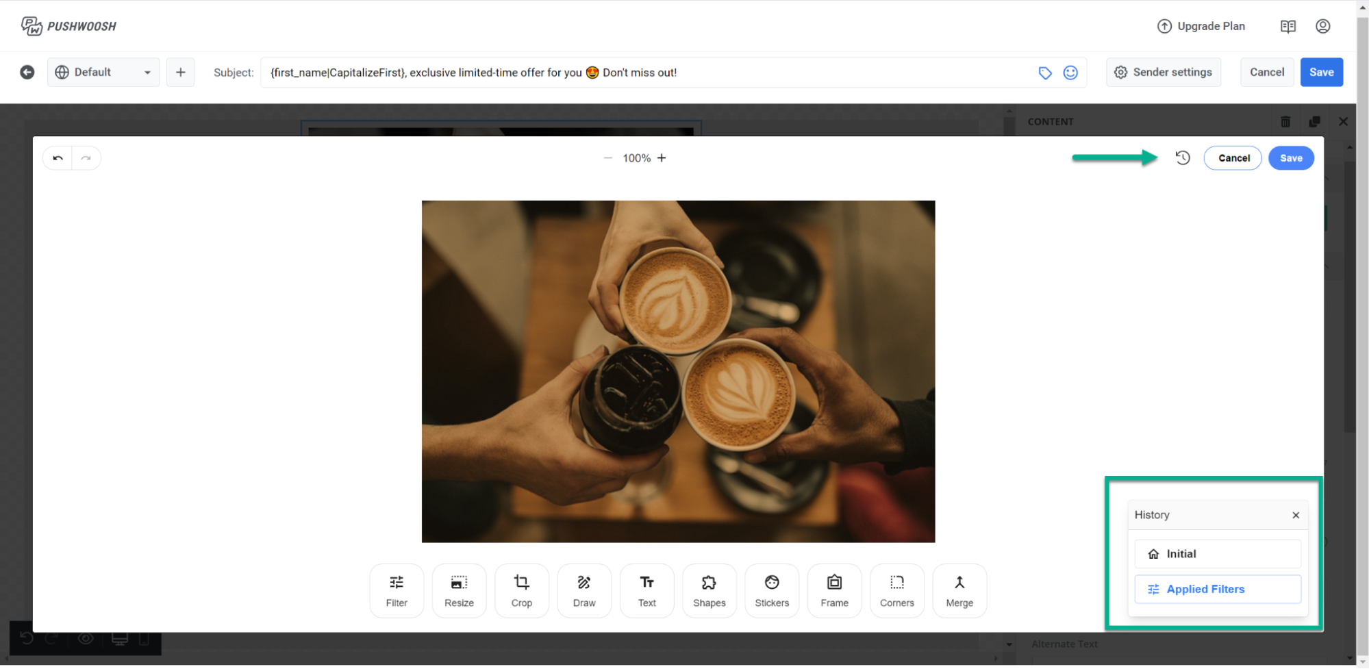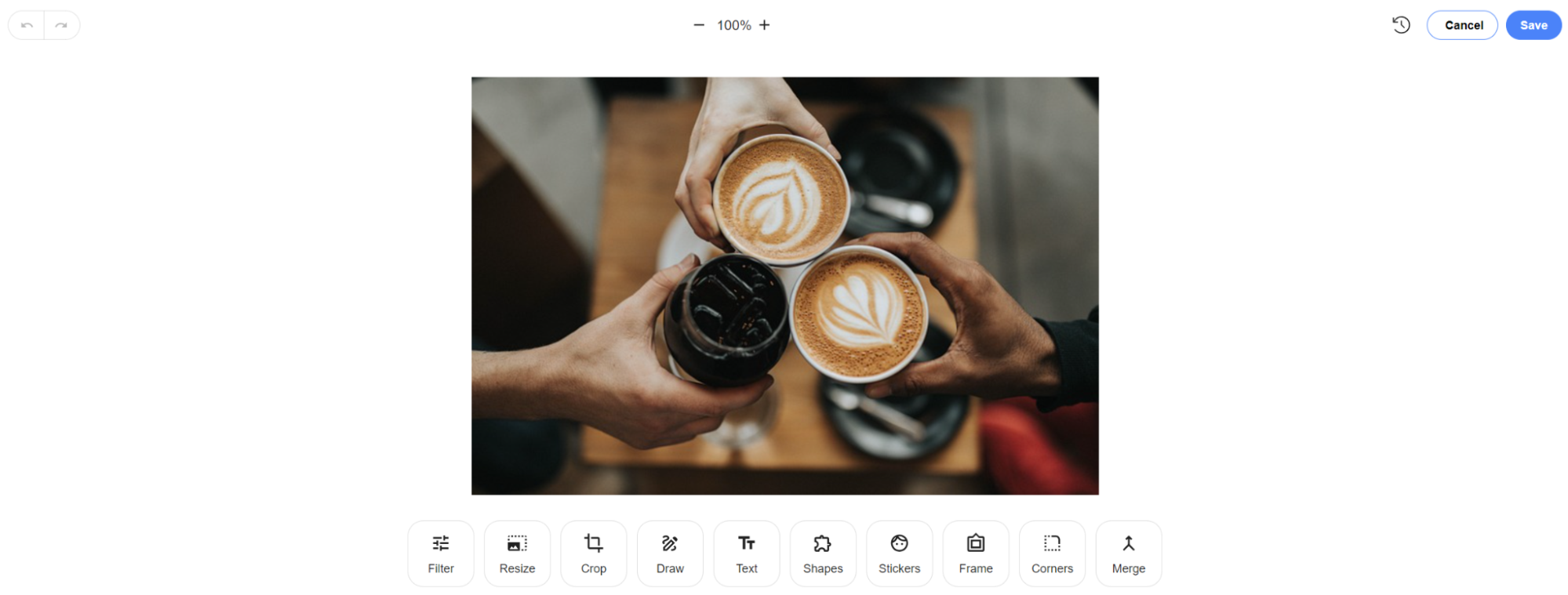 Вы также можете просмотреть историю изменений, внесенных в изображение, и отменить их, нажав на иконку История вверху.