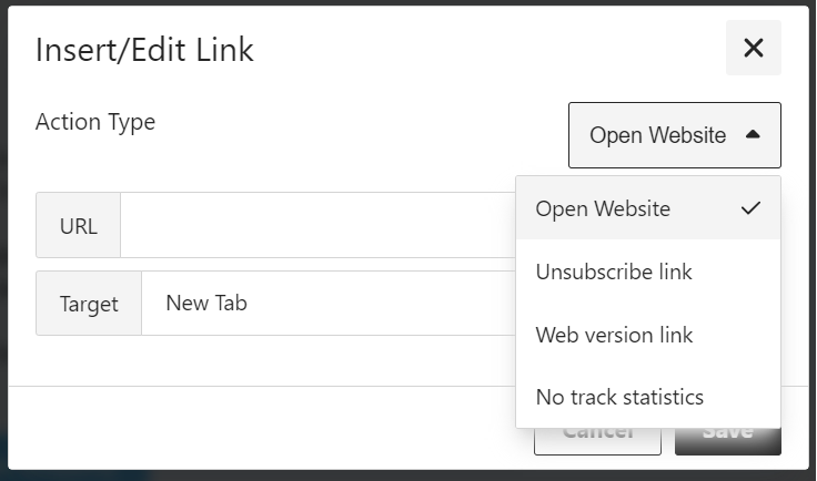 При добавлении или редактировании ссылки в вашем письме у вас есть несколько вариантов для определения ее поведения. Доступные действия включают: