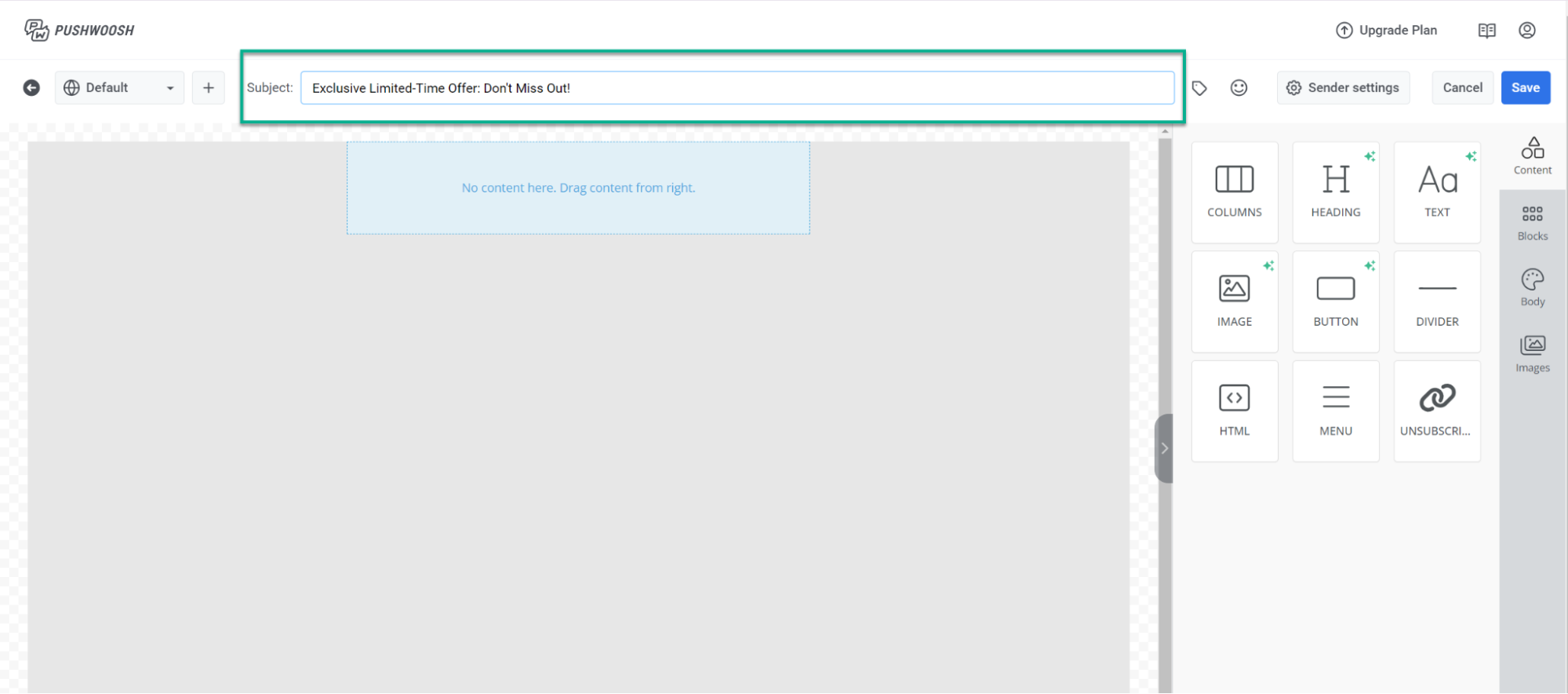 Section titled “Предварительный просмотр и сохранение вашего Email”После создания контента и настройки параметров Email обязательно просмотрите и сохраните ваш Email.