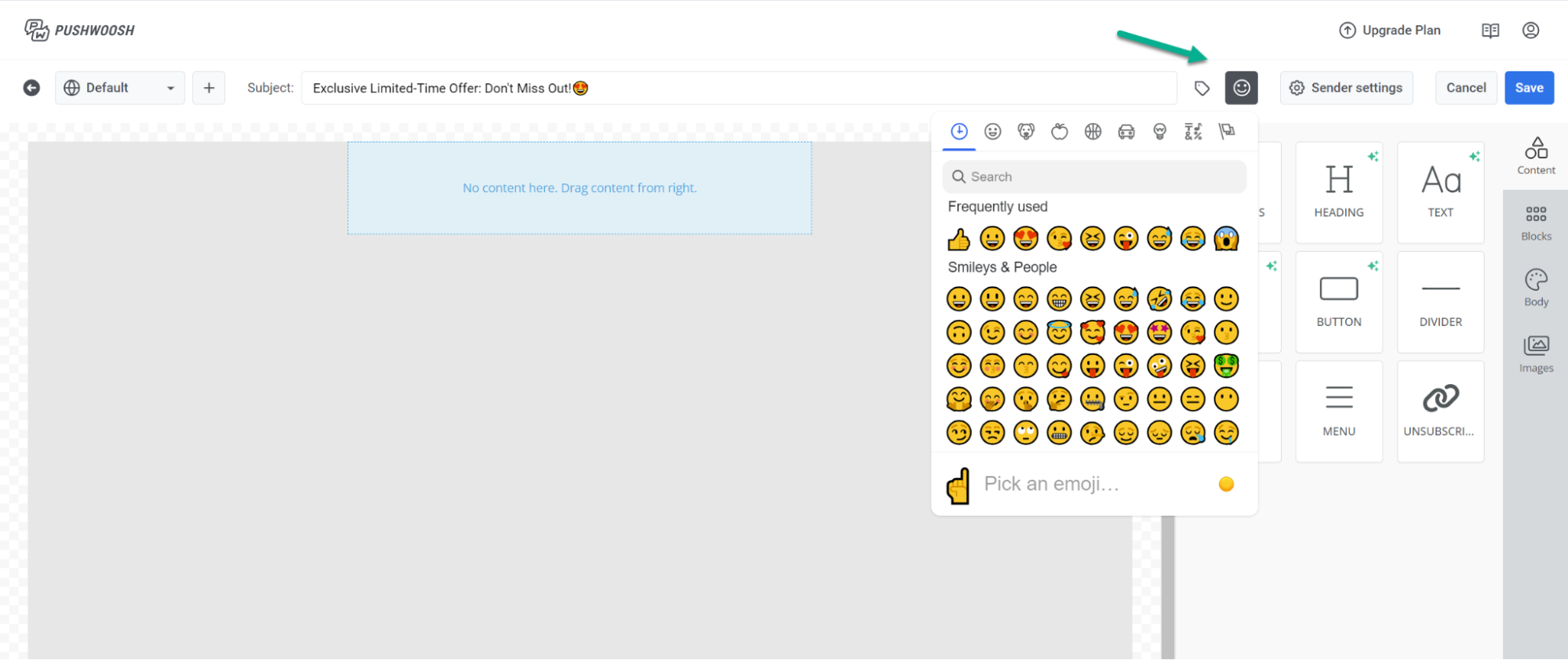 Если вы хотите добавить эмодзи в тему, нажмите на иконку эмодзи рядом с полем Тема (Subject).