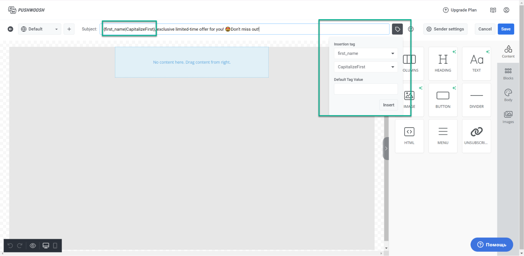 - Drag & drop Email редактор, идеально подходящий для маркетологов без навыков программирования. Узнайте, как создавать контент с помощью Drag & drop редактора.