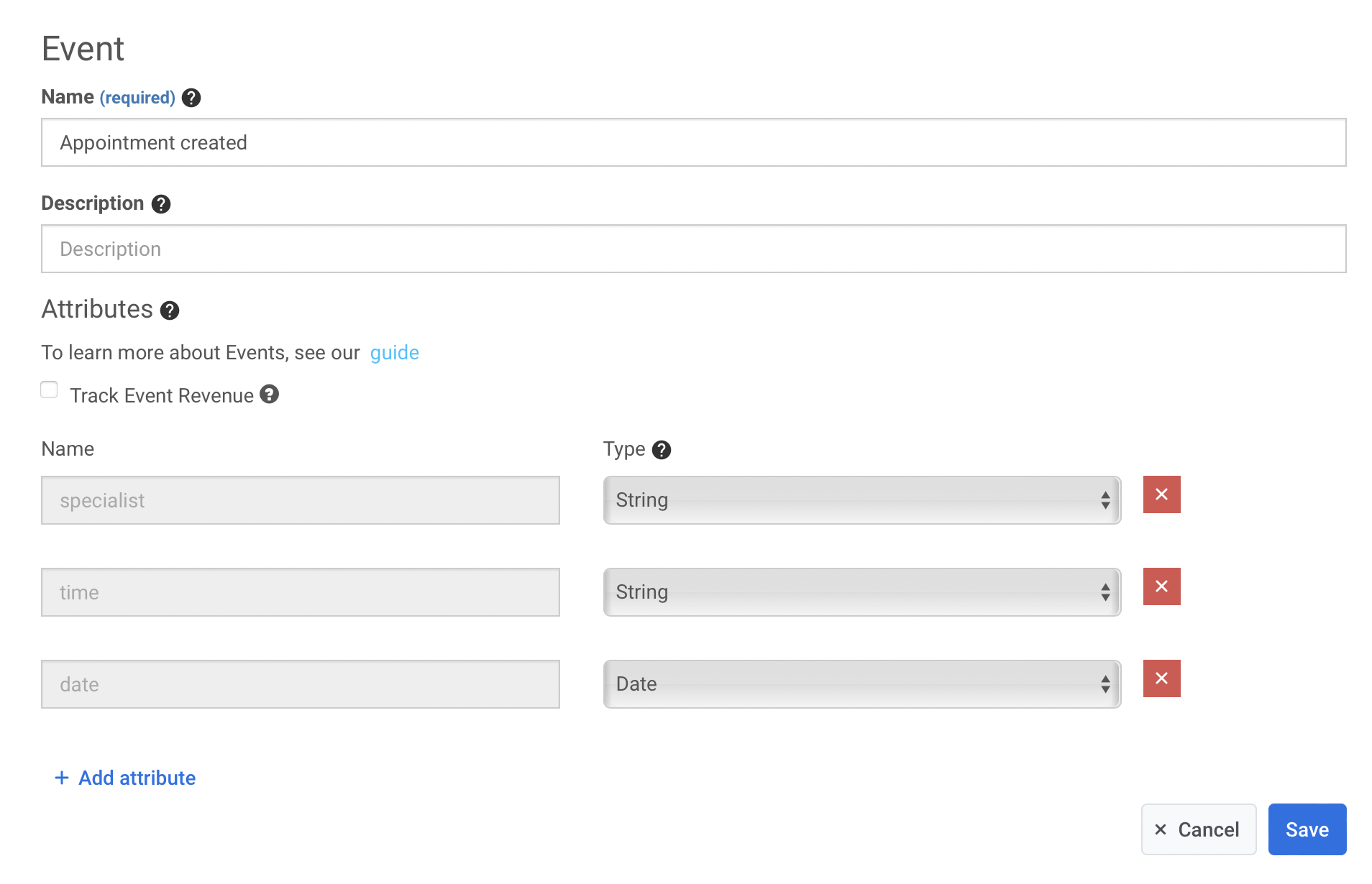 - Создайте Event с необходимыми атрибутами: специалист, дата и время