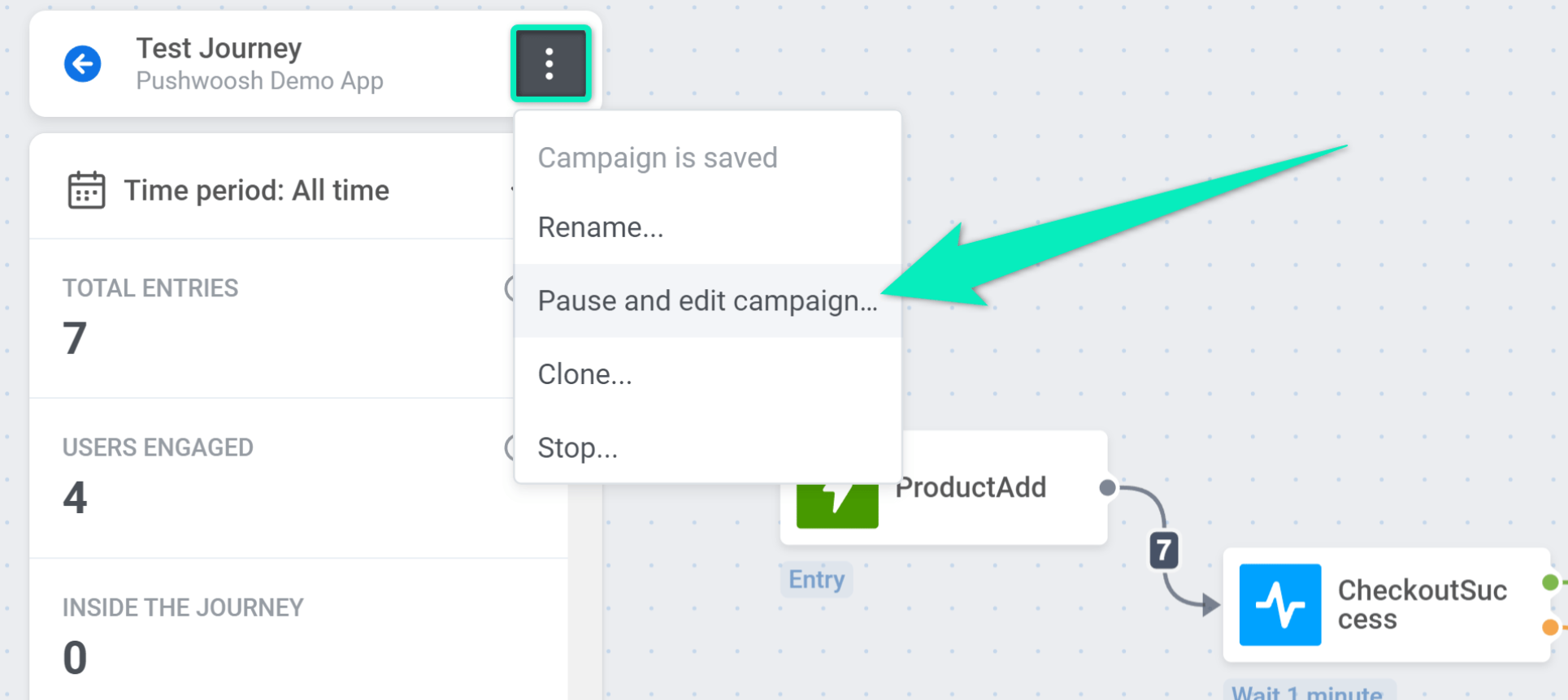Если вы хотите настроить A/B/n-тестирование в активном Journey, сначала приостановите его. Чтобы узнать больше о редактировании активного Journey, прочтите эту статью.