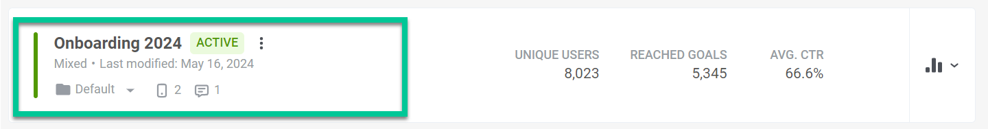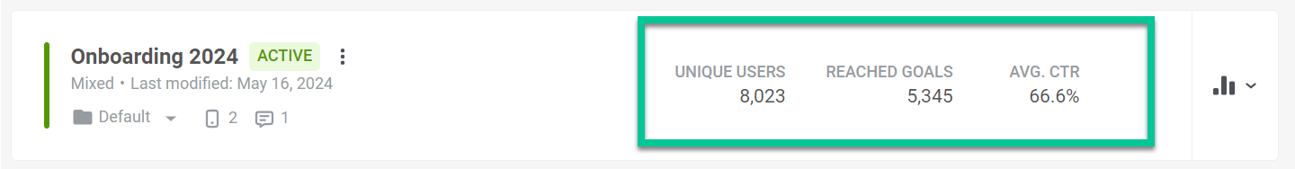 Section titled “Подробная статистика по сообщениям”В списке Customer Journey вы также можете найти подробную статистику по конкретным сообщениям в кампании. Чтобы получить доступ к подробной статистике, просто нажмите на значок Аналитика рядом с нужной кампанией в списке Customer Journey.