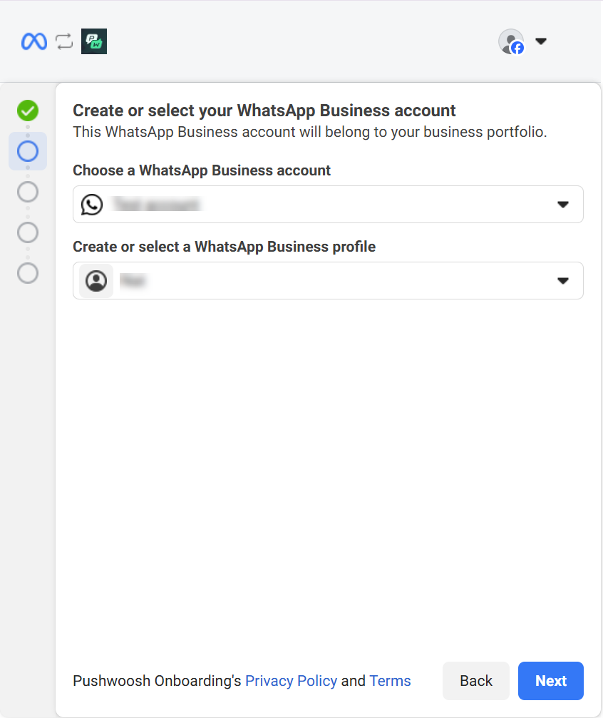- В разделе Выберите бизнес-аккаунт WhatsApp выберите существующий аккаунт из выпадающего меню. Этот аккаунт будет связан с вашим бизнес-портфолио в Wavesend. Если у вас нет бизнес-аккаунта WhatsApp, вы можете создать его, выбрав Создать бизнес-аккаунт WhatsApp. В разделе Создайте или выберите бизнес-профиль WhatsApp выберите существующий профиль или создайте новый для представления вашей компании в WhatsApp.