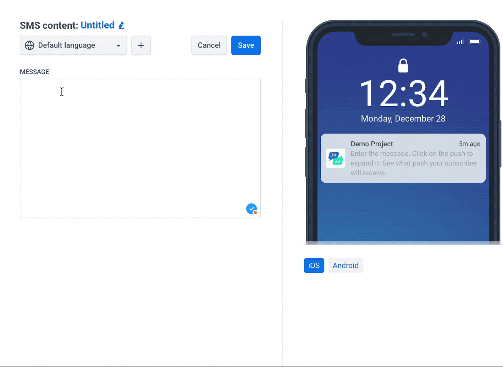 Чтобы персонализировать текст SMS, перейдите в Контент > Пресет SMS > Создать контент.