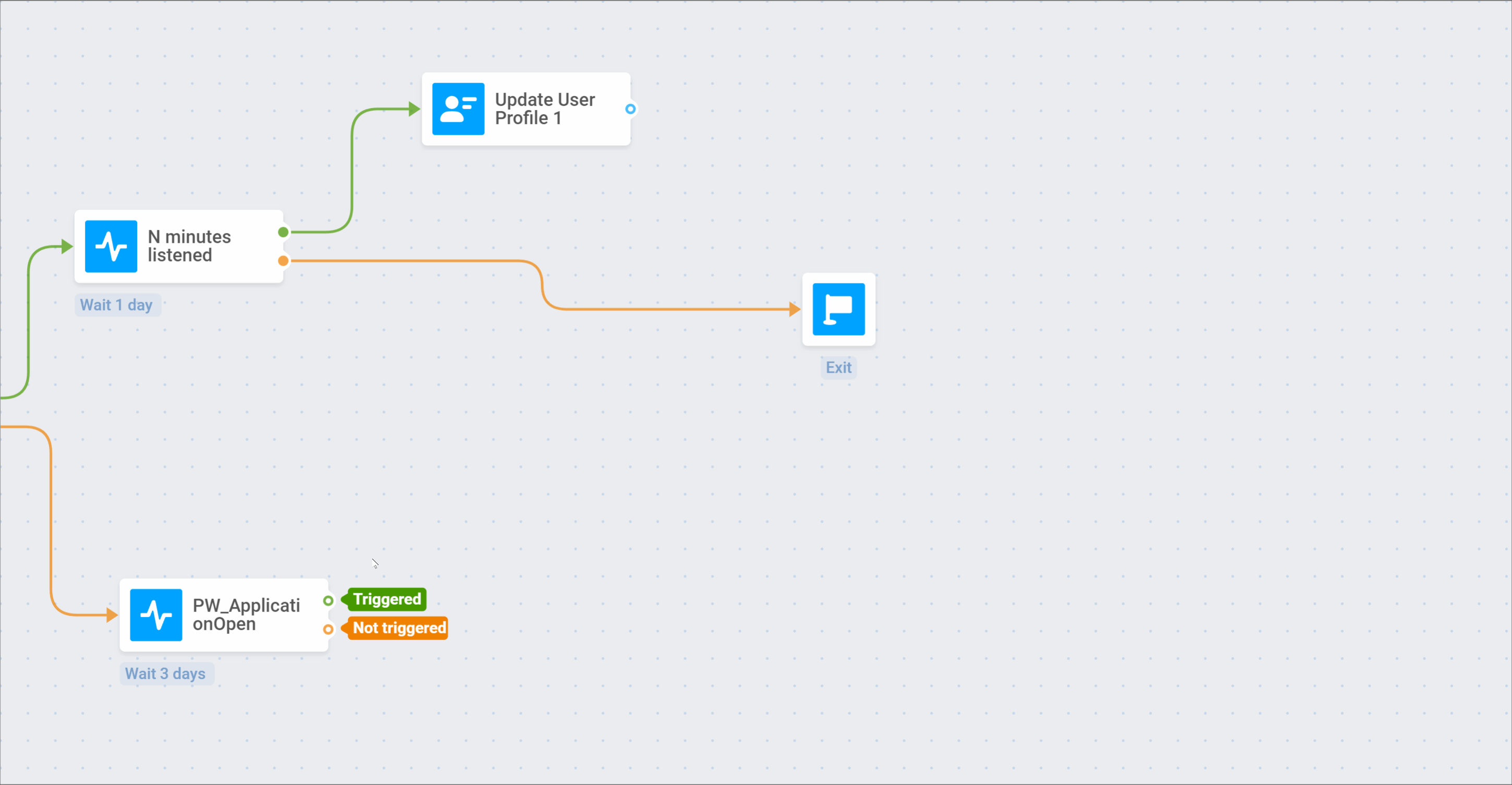 Теперь давайте добавим элемент Wait for Trigger и укажем Event N minutes listened: