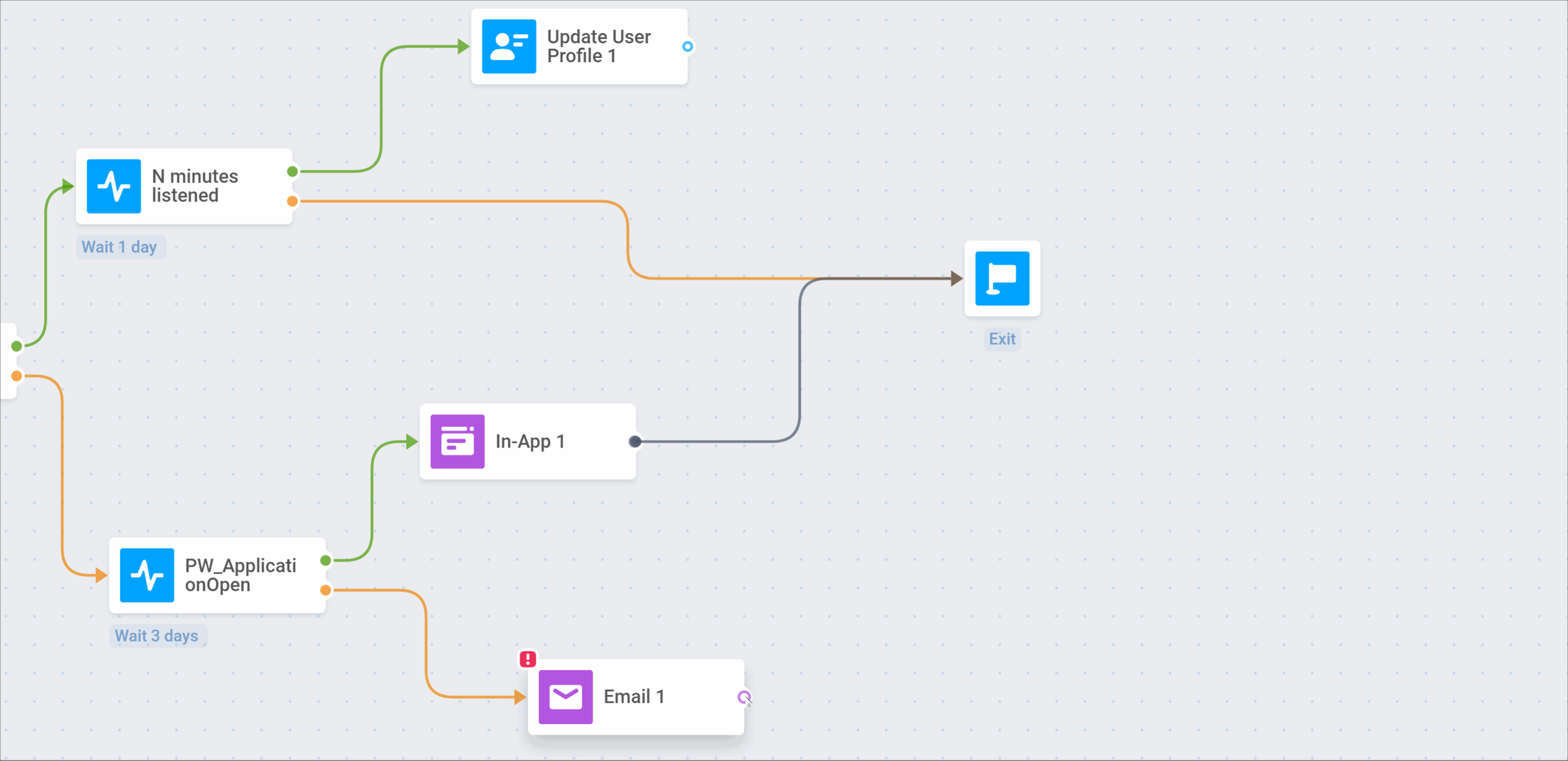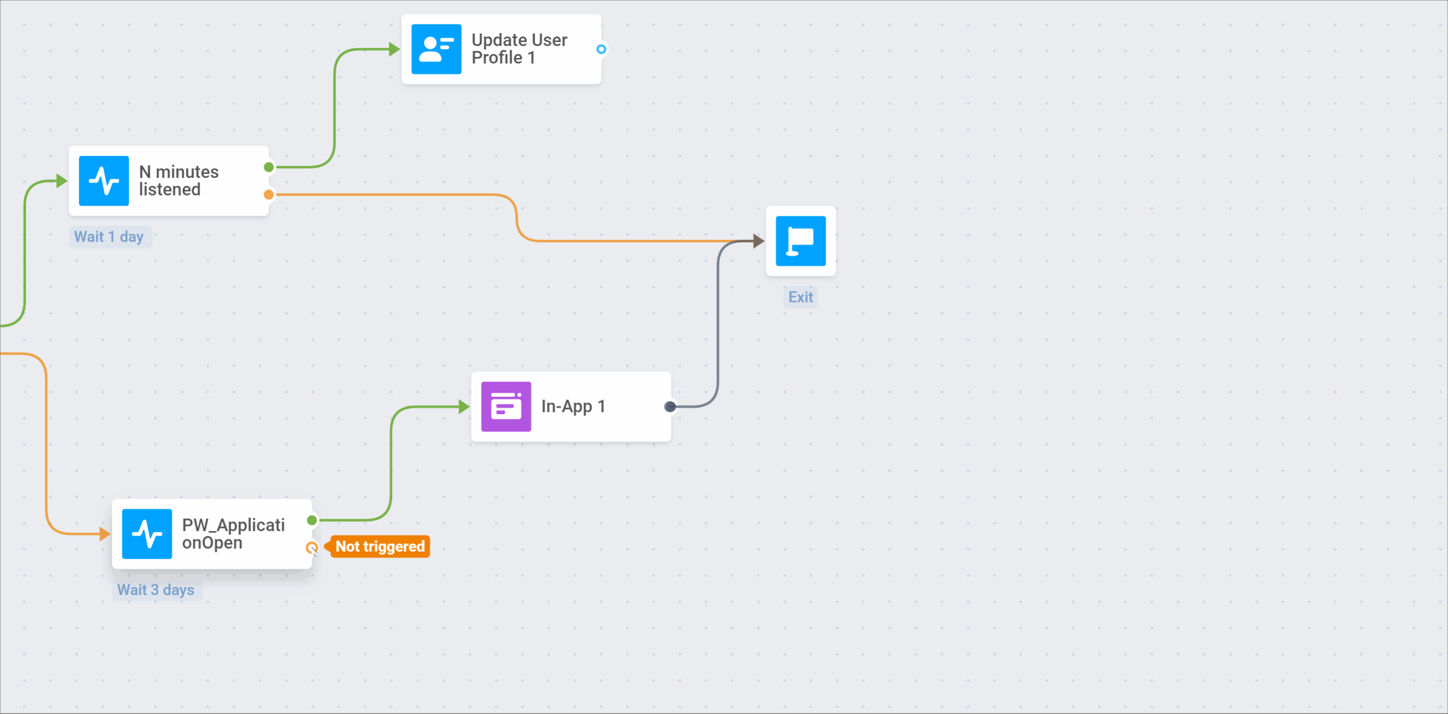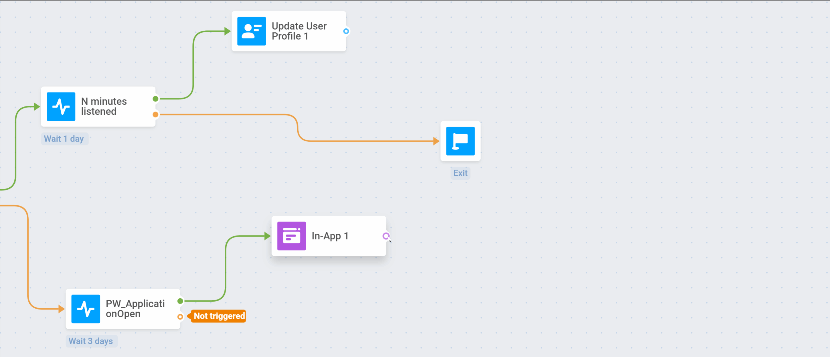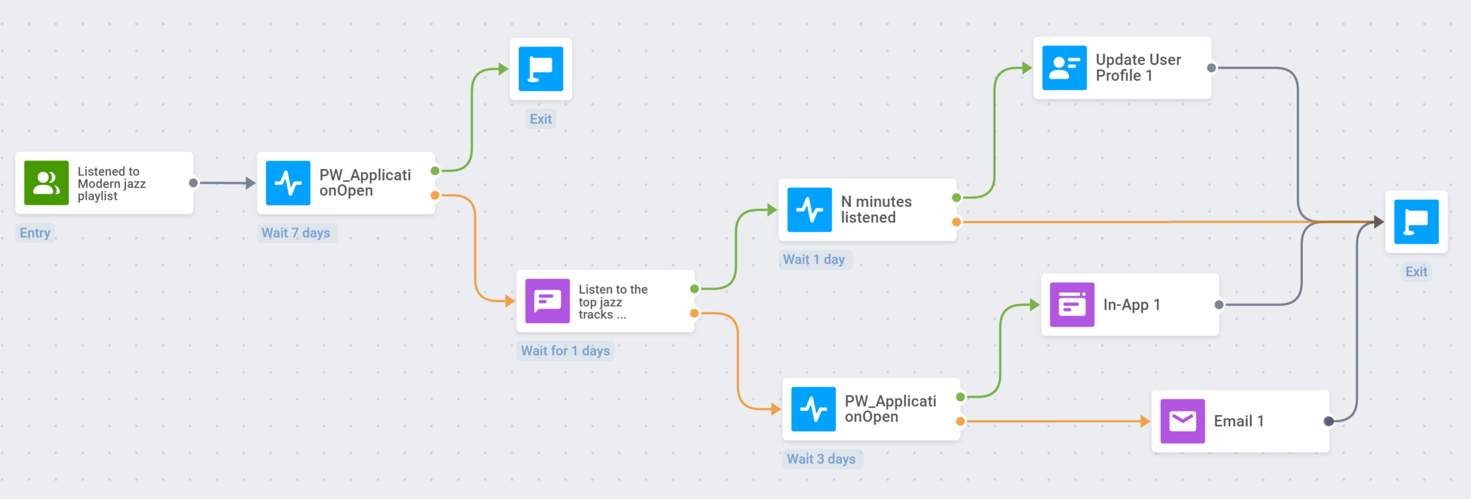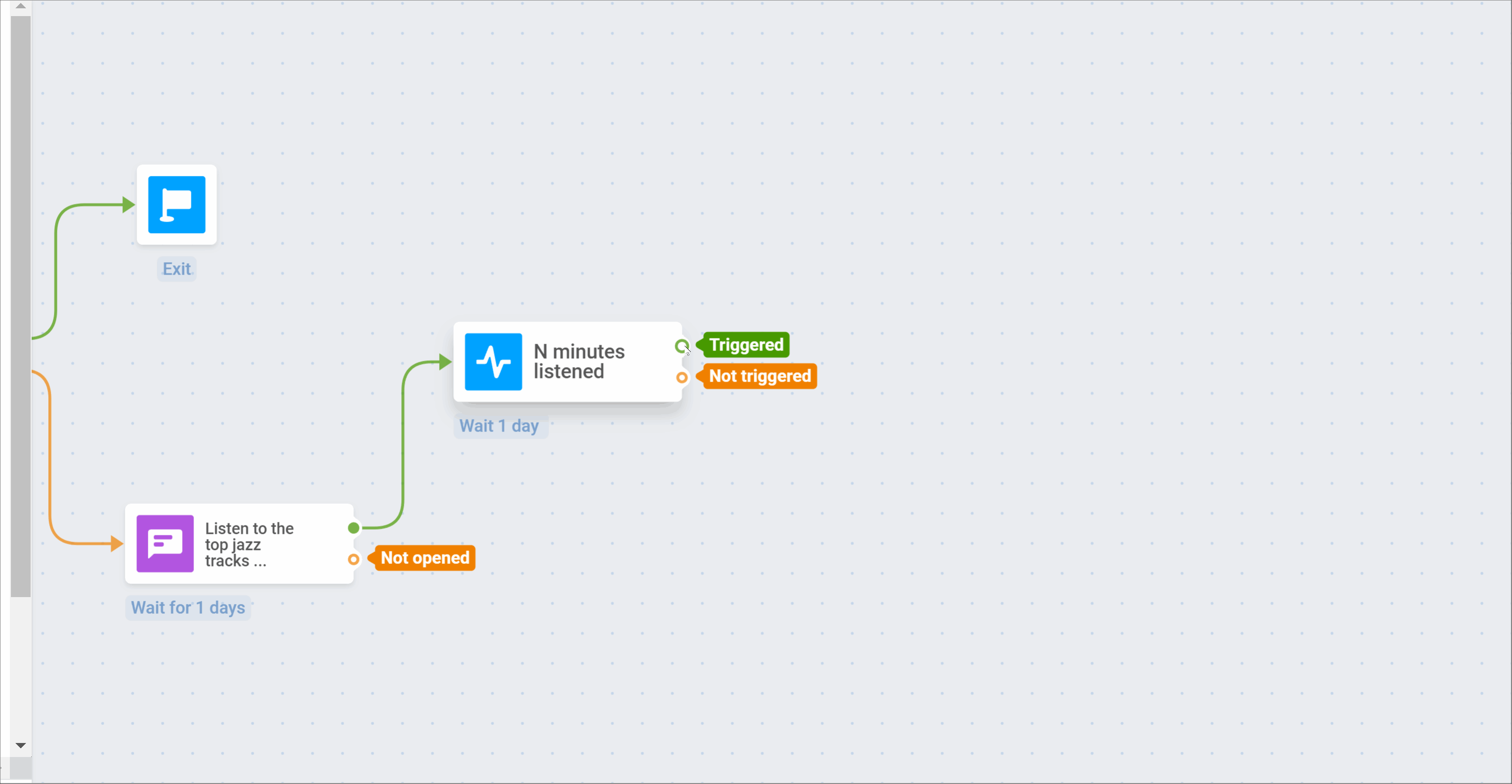 Если пользователь не вызывает Event N minutes listened, он выходит из journey: