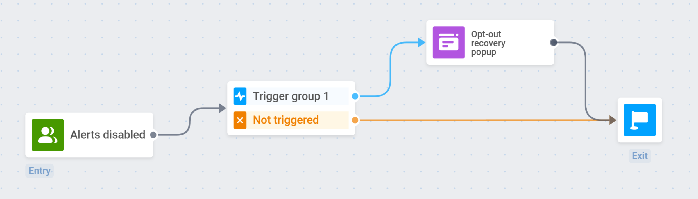 Section titled “Всплывающее окно для возврата отписавшихся”Что касается кампании по возврату отписавшихся, мы рекомендуем создать customer journey для сегмента пользователей, которые отключили или никогда не включали уведомления в приложении.