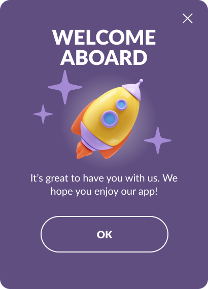 Section titled “Приветствие новых пользователей”Дружелюбно поприветствуйте новых пользователей, проведите их по приложению и дайте несколько советов о его функциях.
