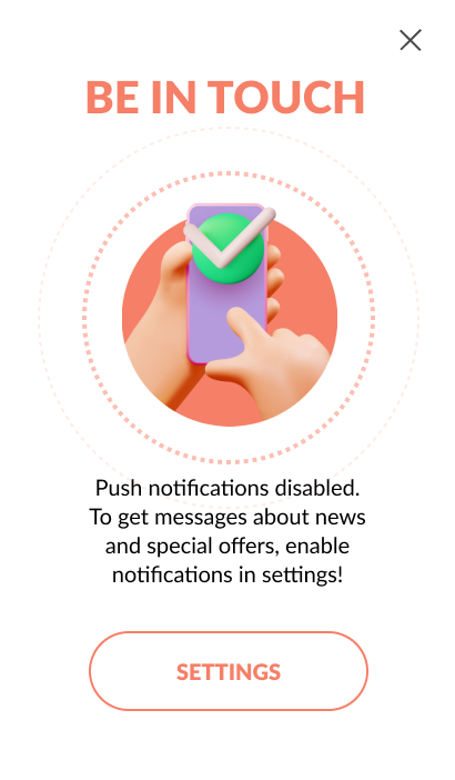 Section titled “Возвращение пользователей, отписавшихся от уведомлений”Убедите пользователей подписаться на Push-уведомления, Email и другие обновления компании.