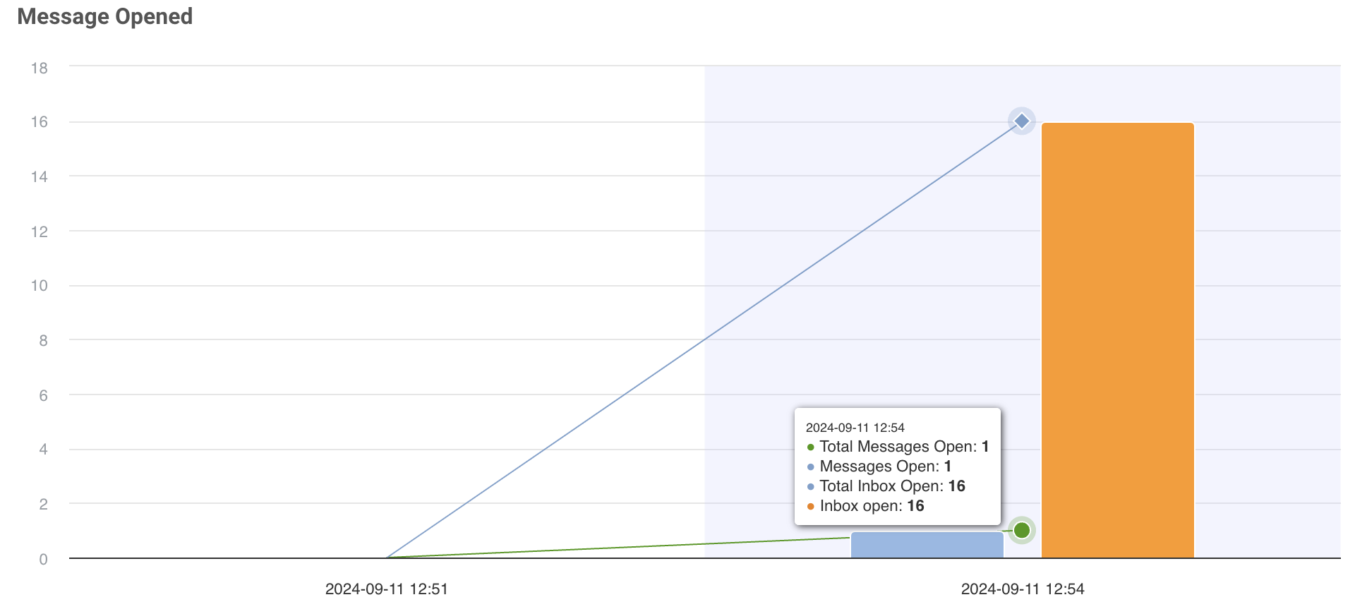 График внизу визуализирует, как были открыты сообщения, включая количество открытий из входящих.