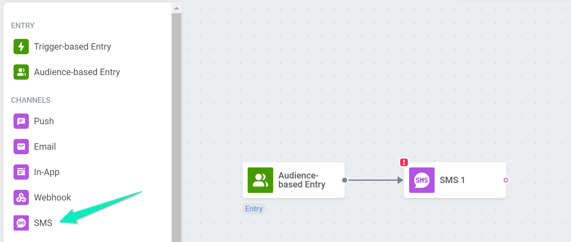 Section titled “Отправка SMS-сообщений через Customer Journey”Чтобы отправить SMS с помощью Customer Journey Builder: