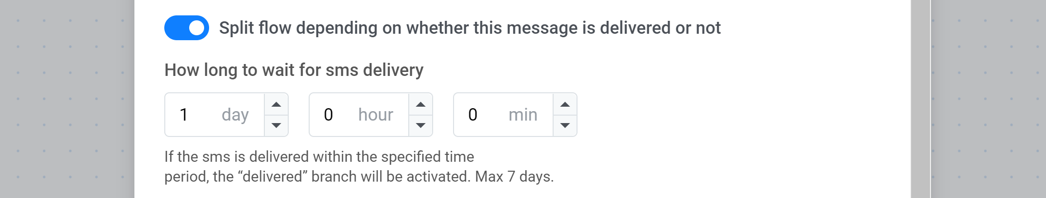 - При необходимости разделите сценарий в зависимости от того, было ли доставлено SMS, и установите время ожидания доставки: