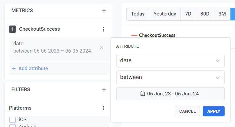 Section titled “Описание фильтров”Фильтры дашборда позволяют сузить отображаемые данные, задав определённые условия. Например, вы можете фильтровать по платформе (iOS или Android), по конкретным кампаниям или по пользовательским Segment. Это помогает сосредоточиться на наиболее важных для вас данных, исключив всю нерелевантную информацию.