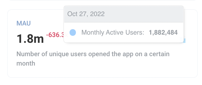 Section titled “MAU (Monthly Active Users)”Monthly Active Users во многом похожи на DAU, но включают пользователей, которые взаимодействовали с вашим проектом в течение месяца до предыдущего дня (например, если вы проверяете статистику 28 ноября, MAU будет рассчитан за период с 27 октября по 27 ноября). Monthly Active Users — это ваша основная Audience, которую вы можете вовлекать и удерживать в долгосрочной перспективе.