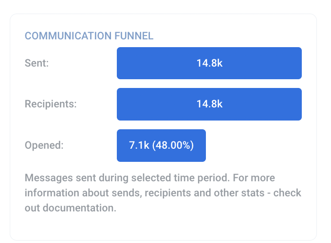 Section titled “Воронка коммуникаций”Этот простой график наглядно показывает эффективность ваших сообщений с помощью трех основных метрик: