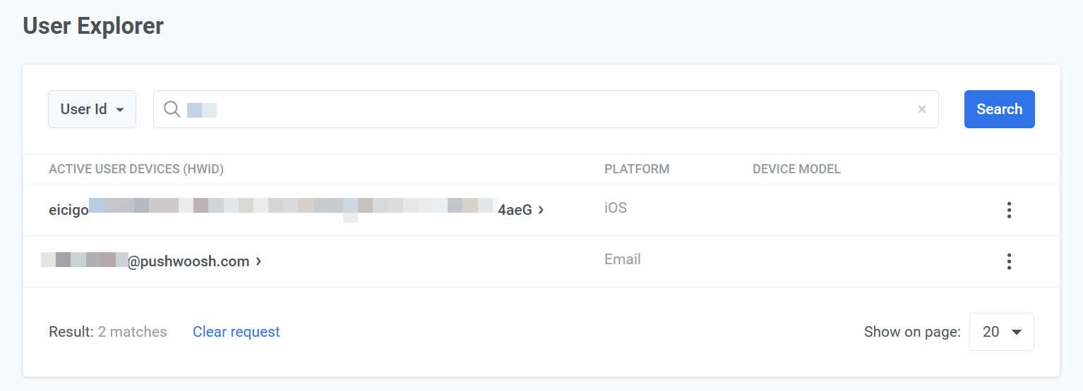 Чтобы увидеть все устройства, связанные с определенным User ID, введите этот User ID в User Explorer Wavesend, и вы увидите все активные устройства пользователя, а также все его теги.